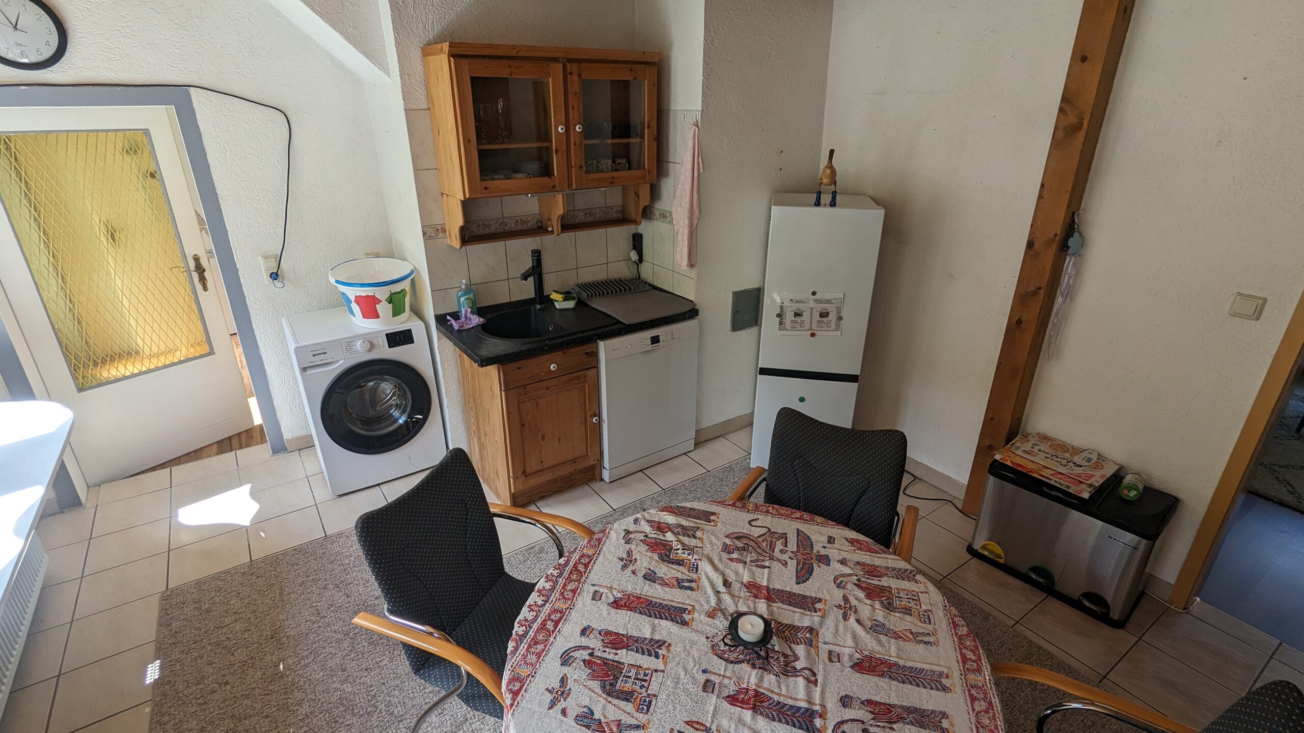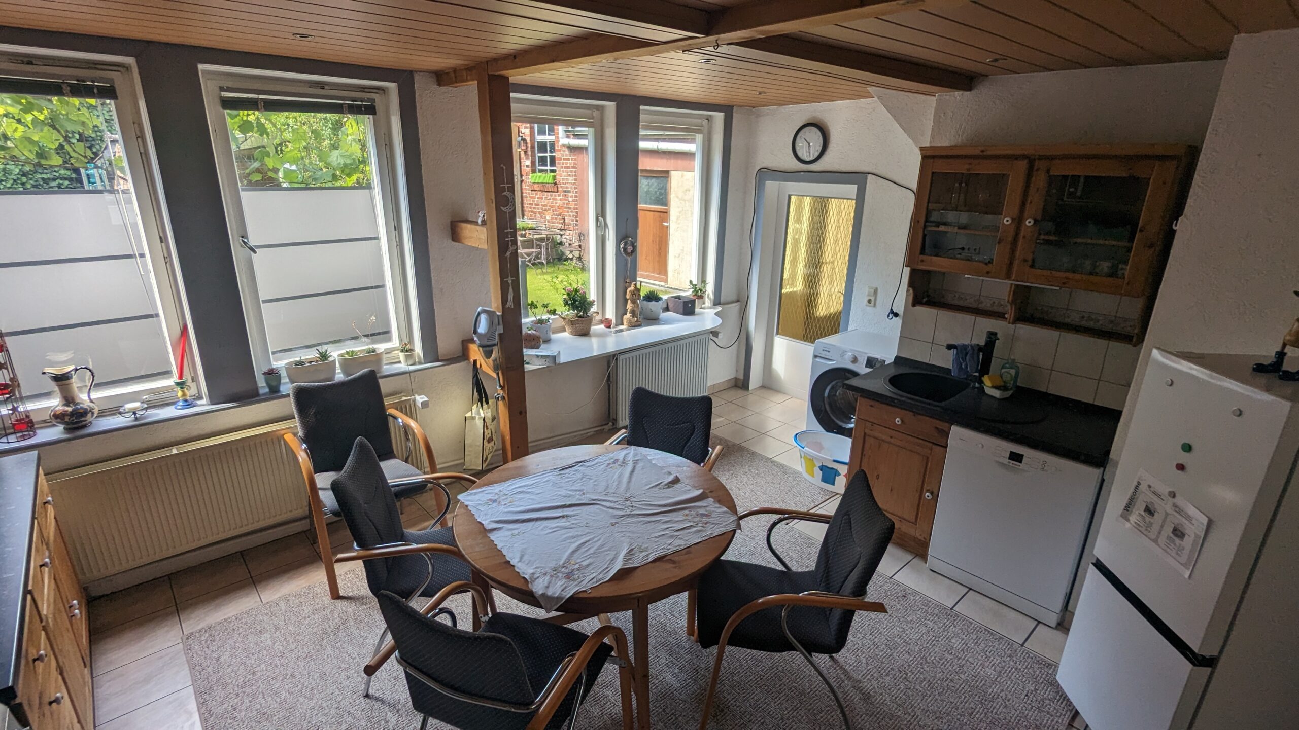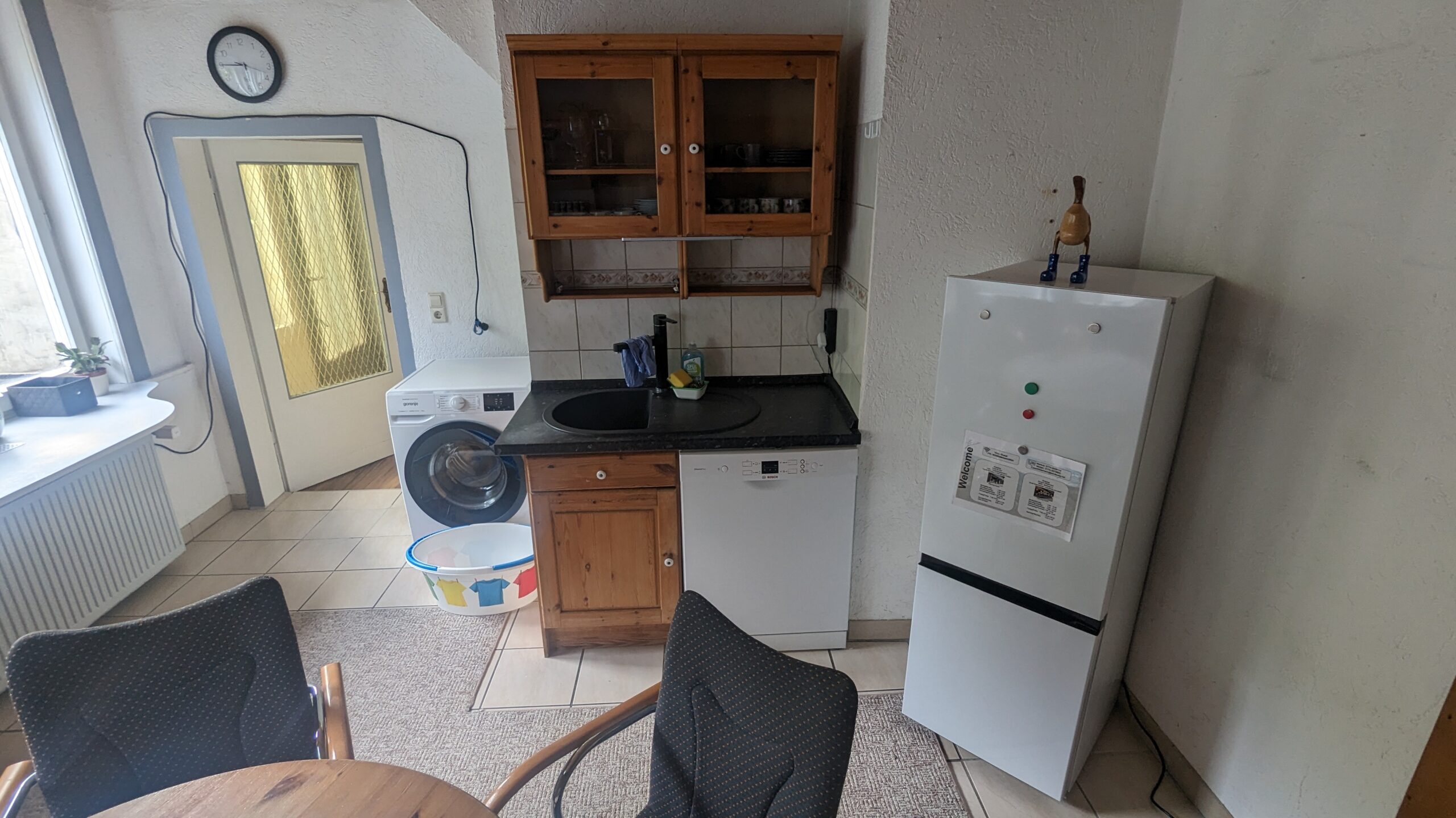 Es erwartet Sie eine voll ausgestattete Ferienwohnung. Im Erdgeschoss gelegen, verfügt sie über ein Schlafzimmer, ein großes Wohnzimmer, einen idyllischen Garten, eine Wohnküche und ein Bad. Wir hoffen, dass es Ihnen an nichts mangeln wird. Genießen Sie die behagliche Atmosphäre und die Nähe zur Natur.
